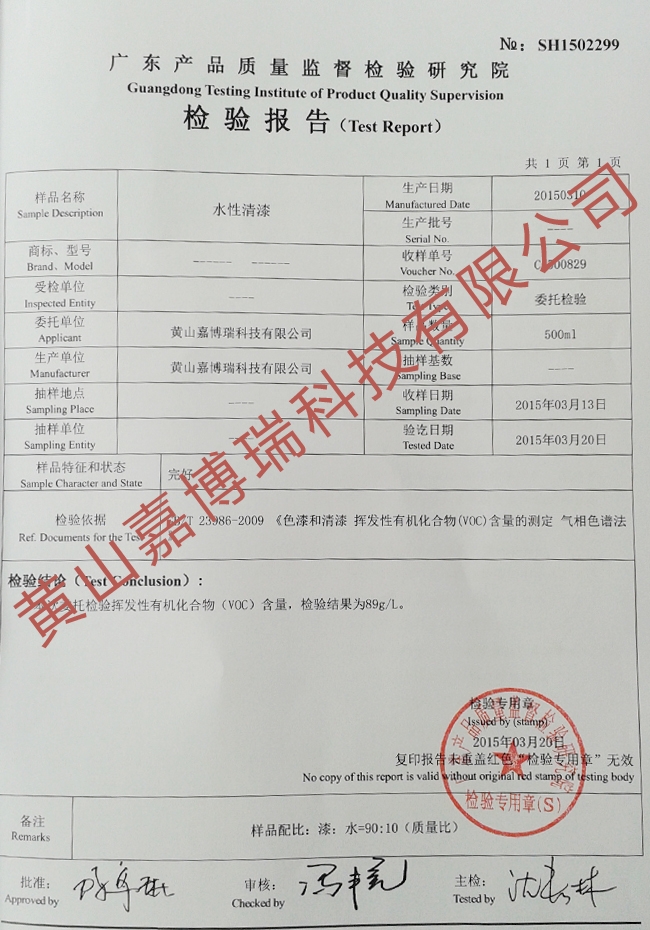 水性清漆 VOC檢測(cè) 結(jié)論頁(yè)面