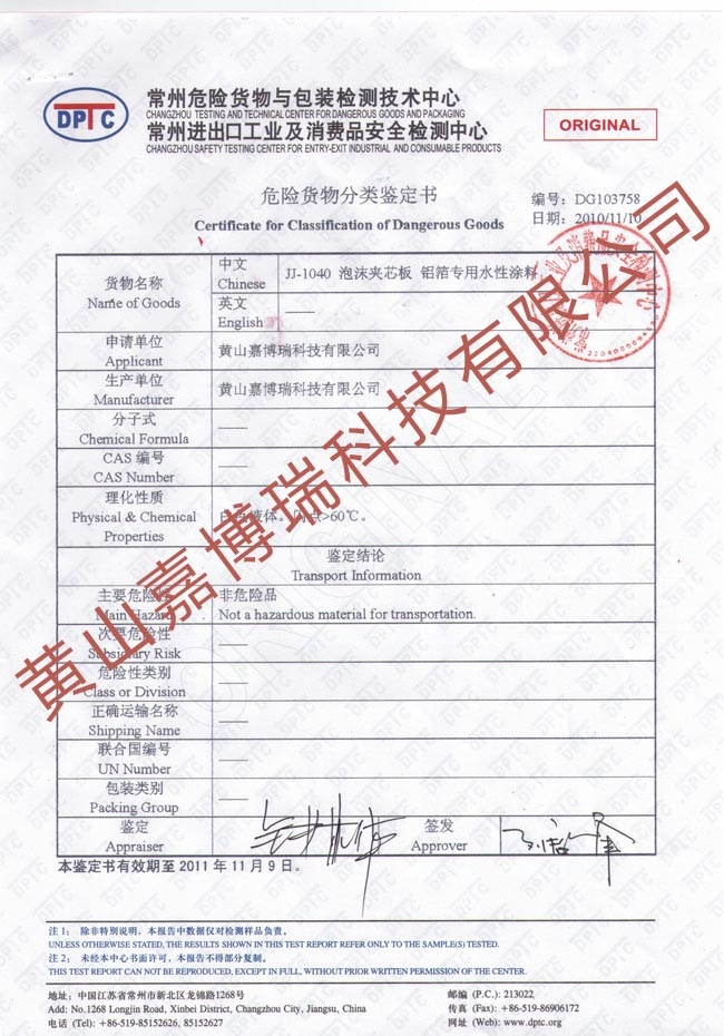 危險(xiǎn)貨物分類鑒定書_JJ-1040